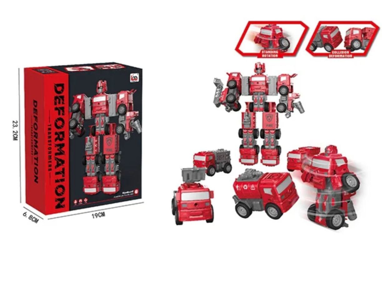 تصميم متحول: يتحول من مركبة (إطفاء – إنقاذ – شاحنة بناء – مركبة فضائية) إلى روبوت مهيب. أوضاع لعب متعددة: دوران، حركة، وتشغيل تلقائي عند الاصطدام. جودة عالية: مصنوع من مواد بلاستيكية آمنة ومتينة تتحمل اللعب الطويل. ألوان وأشكال متنوعة: يتوفر بعدة نسخ (أحمر – أصفر – أزرق/أبيض). تعليم وترفيه: ينمي خيال الطفل، مهاراته اليدوية، وحس الإبداع. يمكن للأطفال الاستمتاع به كسيارة في البداية، ثم تحويله إلى روبوت بضغطة أو حركة بسيطة. مثالي لهواة الروبوتات والمركبات على حد سواء.
