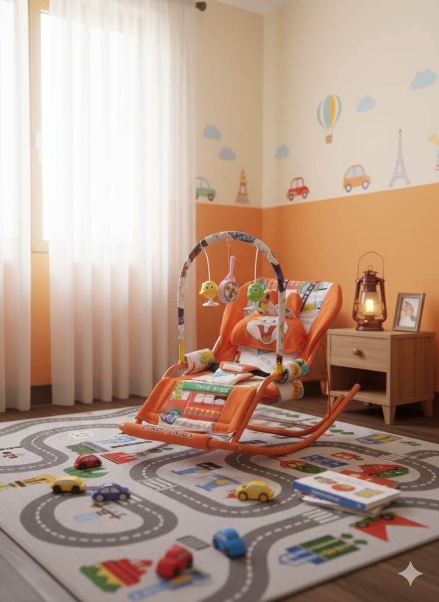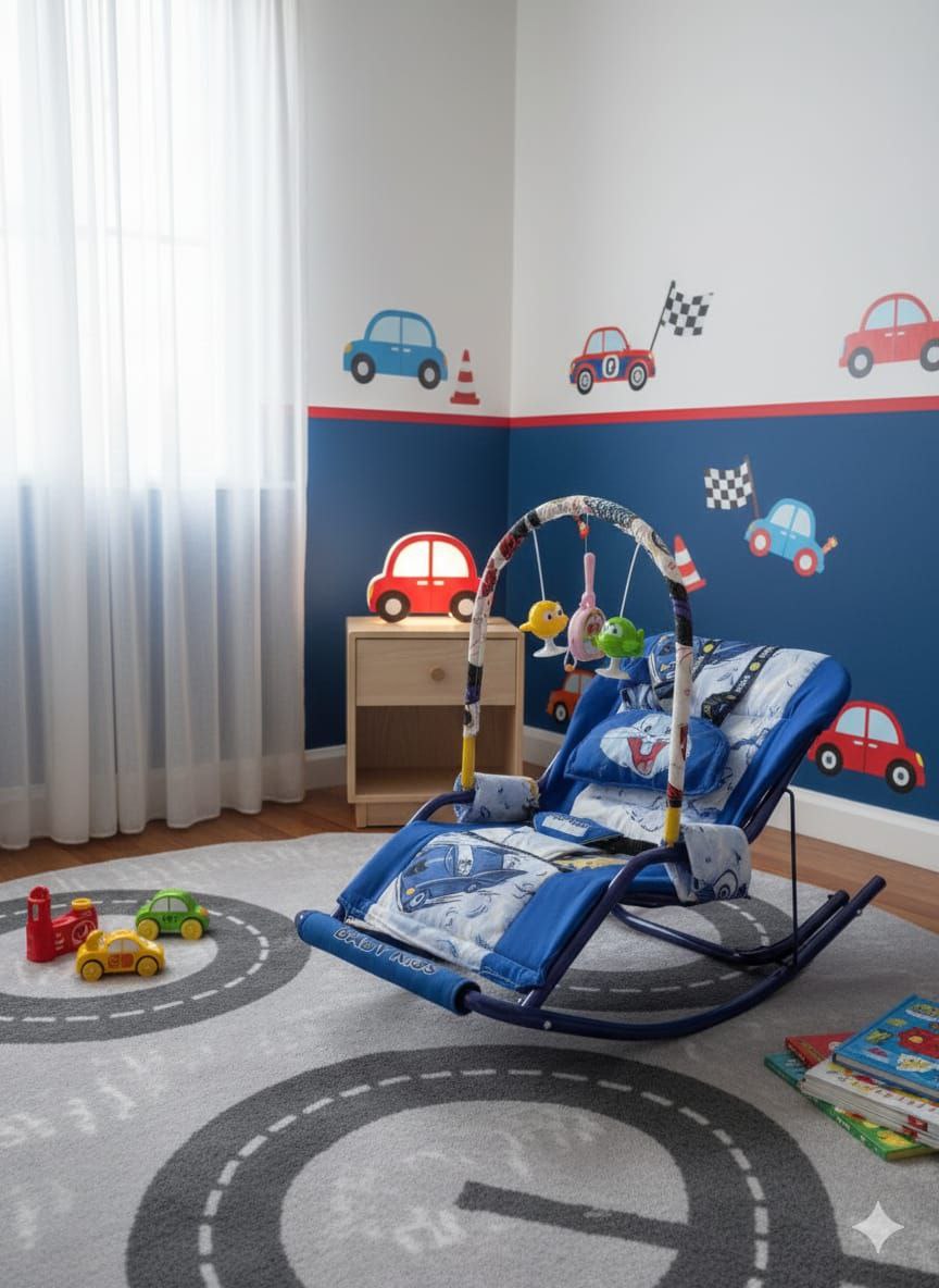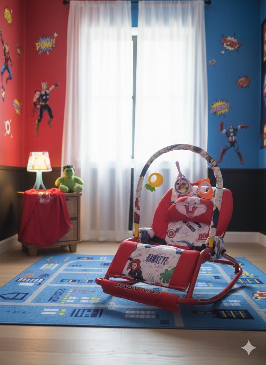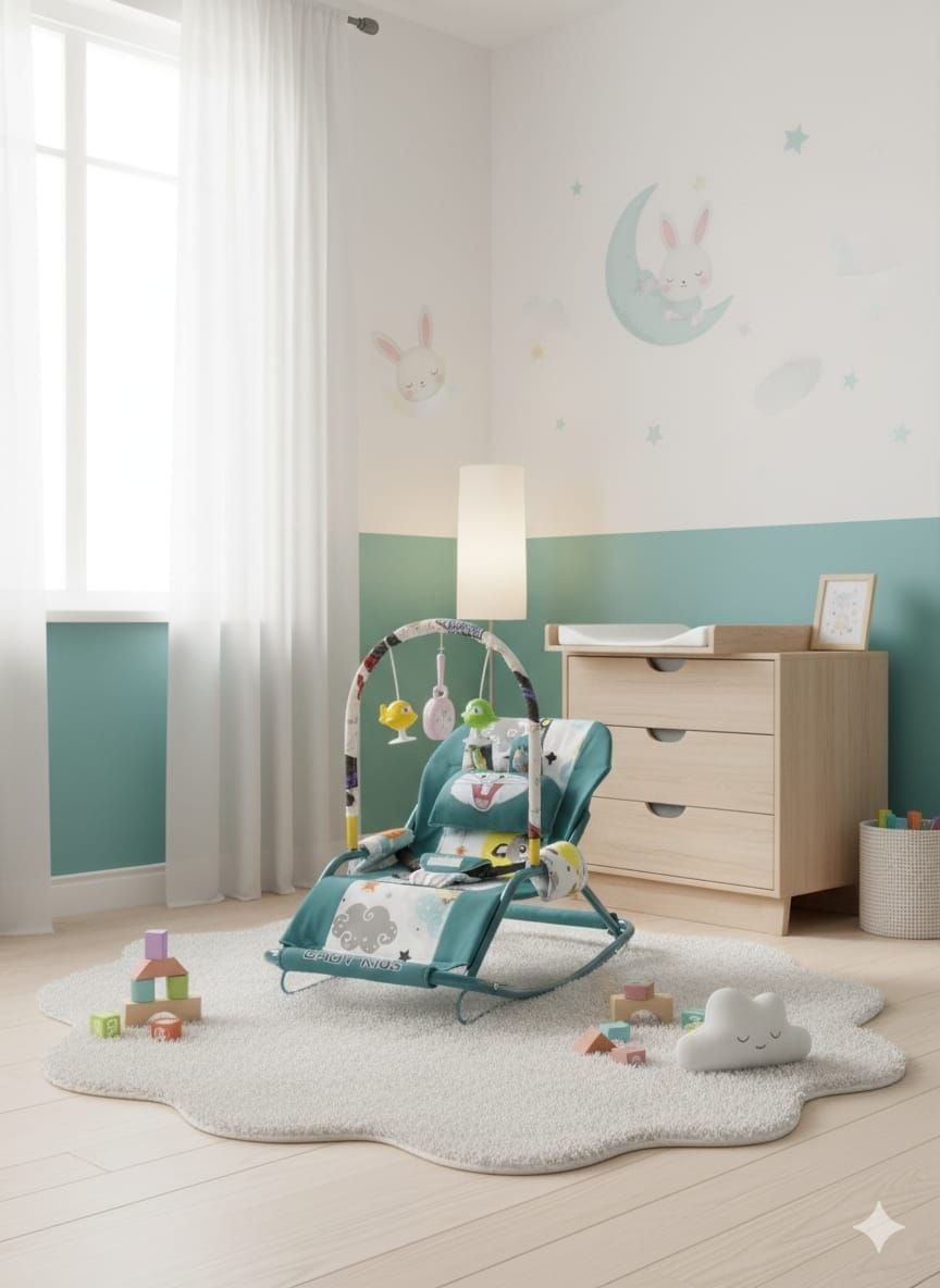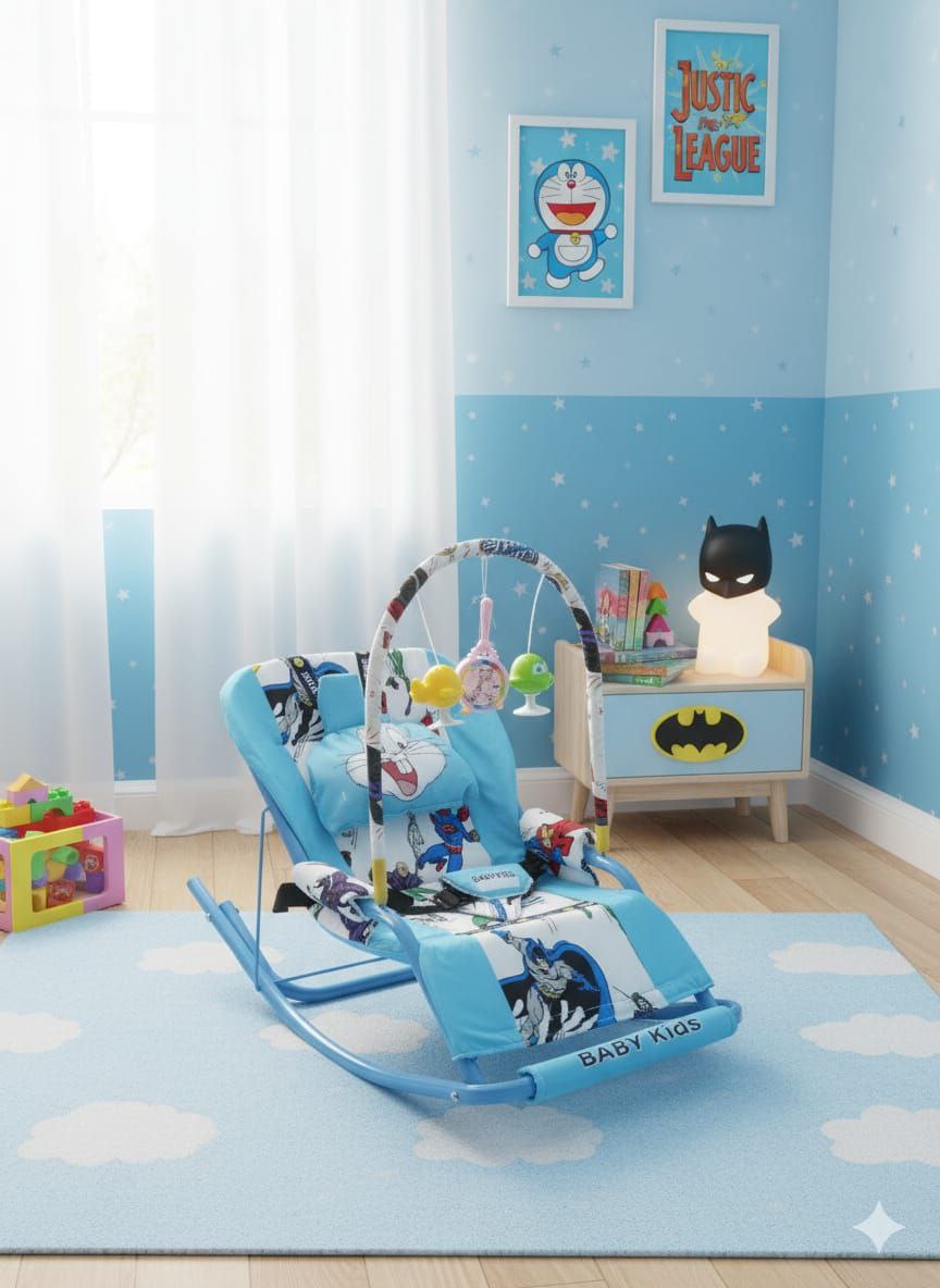 كرسي هزاز شيك ومريح هيساعدك تهدي طفلك وينام في أمان وراحة. الخامة ناعمة على بشرة البيبي، وعليه رسومات كرتونية ظريفة. المميزات: تصميم هزاز يساعد على تهدئة البيبي والنوم بسهولة قماش مبطن ناعم ومريح بيوفر دعم كويس لظهر ورقبة الطفل مزود بحزام أمان علشان يحافظ على سلامة الطفل أثناء الهز فيه ألعاب معلقة بألوان زاهية علشان تسلي البيبي وتحفّز حواسه مناسب من أول الولادة لحد سن سنتين تقريبًا سهل التنضيف وخفيف تقدري تنقليه في أي مكان اختاري لطفلك الراحة والأمان مع الكرسي الهزاز