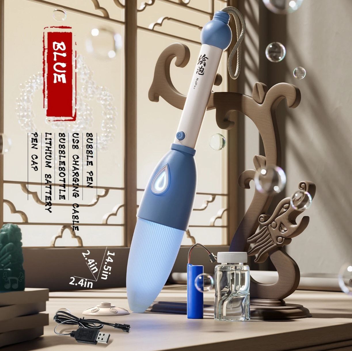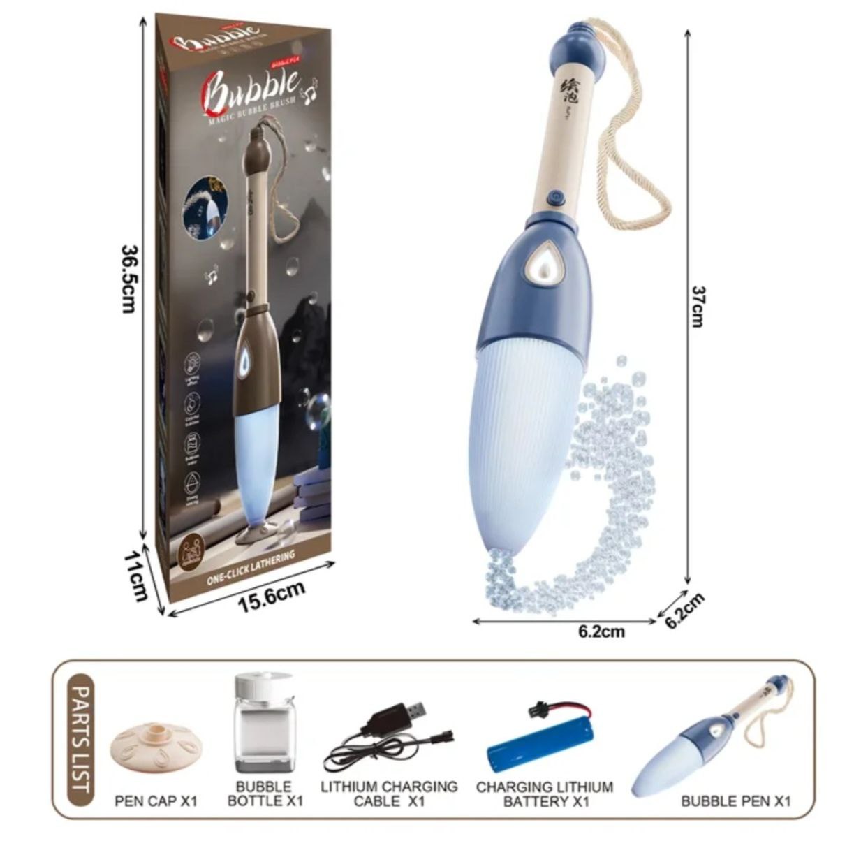 إبداع ولعب ممتع: يمكن للأطفال رسم أشكال أو كتابة حروف باستخدام الفقاعات على الجدران، النوافذ، الطاولات وحتى فوق الماء. إضاءة رائعة: مزود بأضواء LED ملونة تضيف لمسة سحرية أثناء خروج الفقاعات، خاصة في الأماكن المظلمة. قابل للشحن: يعمل ببطارية قابلة للشحن عبر كابل USB (مرفق ضمن المجموعة). سهل الاستخدام: تصميم على شكل قلم مريح للأطفال مع زر تشغيل بسيط. آمن للأطفال: مصنوع من مواد آمنة وخفيفة، مع ماء فقاعات غير ضار بالبشرة. مقاسات عملية: طول القلم حوالي 17.2 سم، خفيف وسهل الحمل.