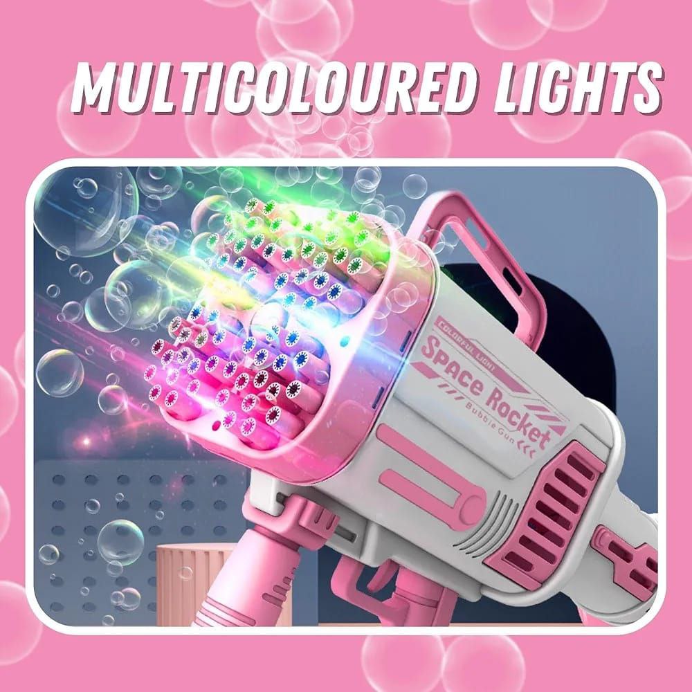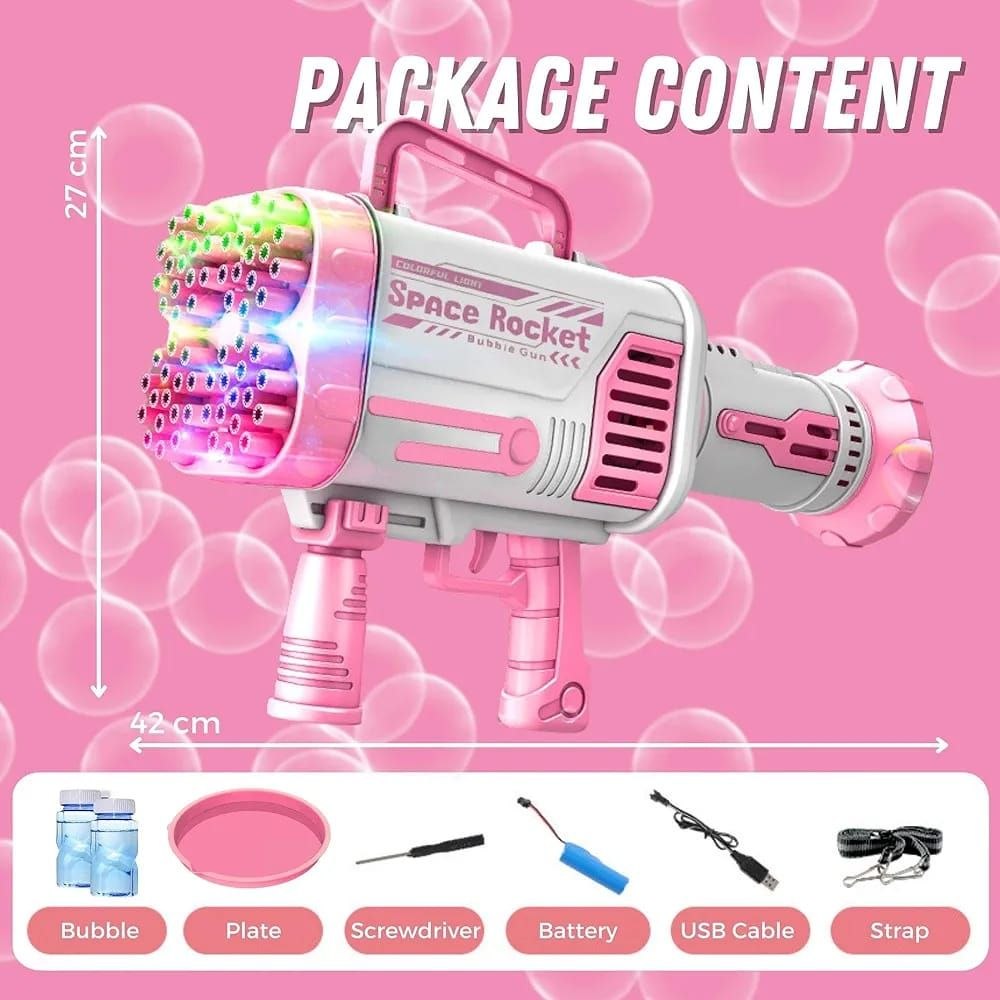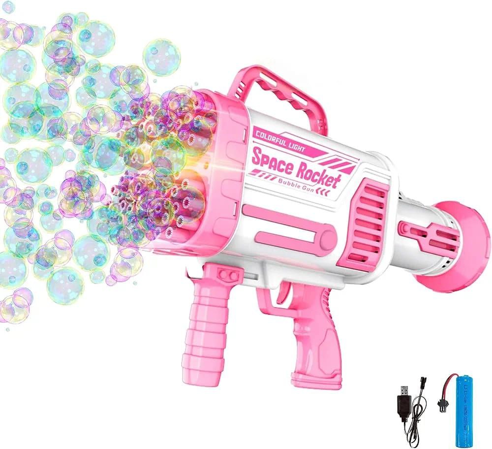 مسدس فقاعات كهربائي Space Rocket – 92 فتحة بإضاءة LED وشحن USB