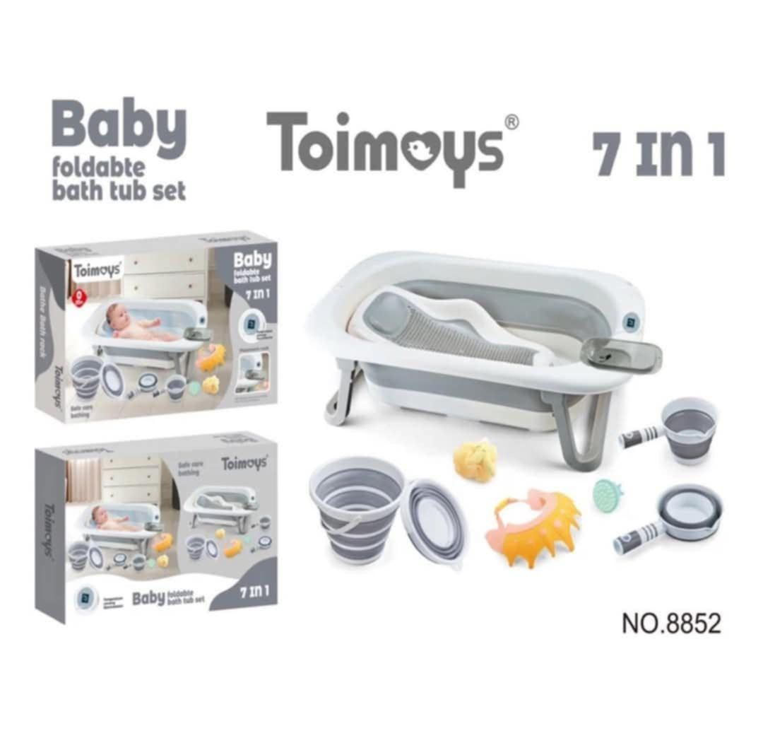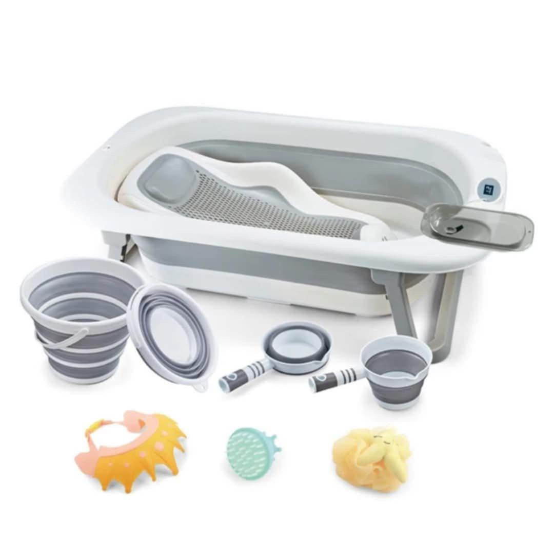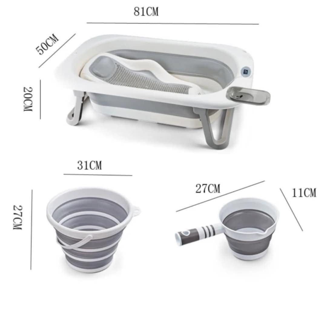 بانيو استحمام قابل للطي بعداد سيليكون + كرسي استحمام + جردل استحمام