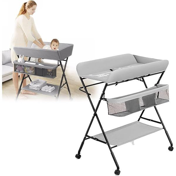مناسبة للاستخدام من جميع أفراد العائلة بمختلف الأطوال طاولة أطفال مزودة باربع بعجلات سهلة الحركة، يمكنك تعليق ملابس الطفل وتخزين الحفاضات وغيرها من الأشياء