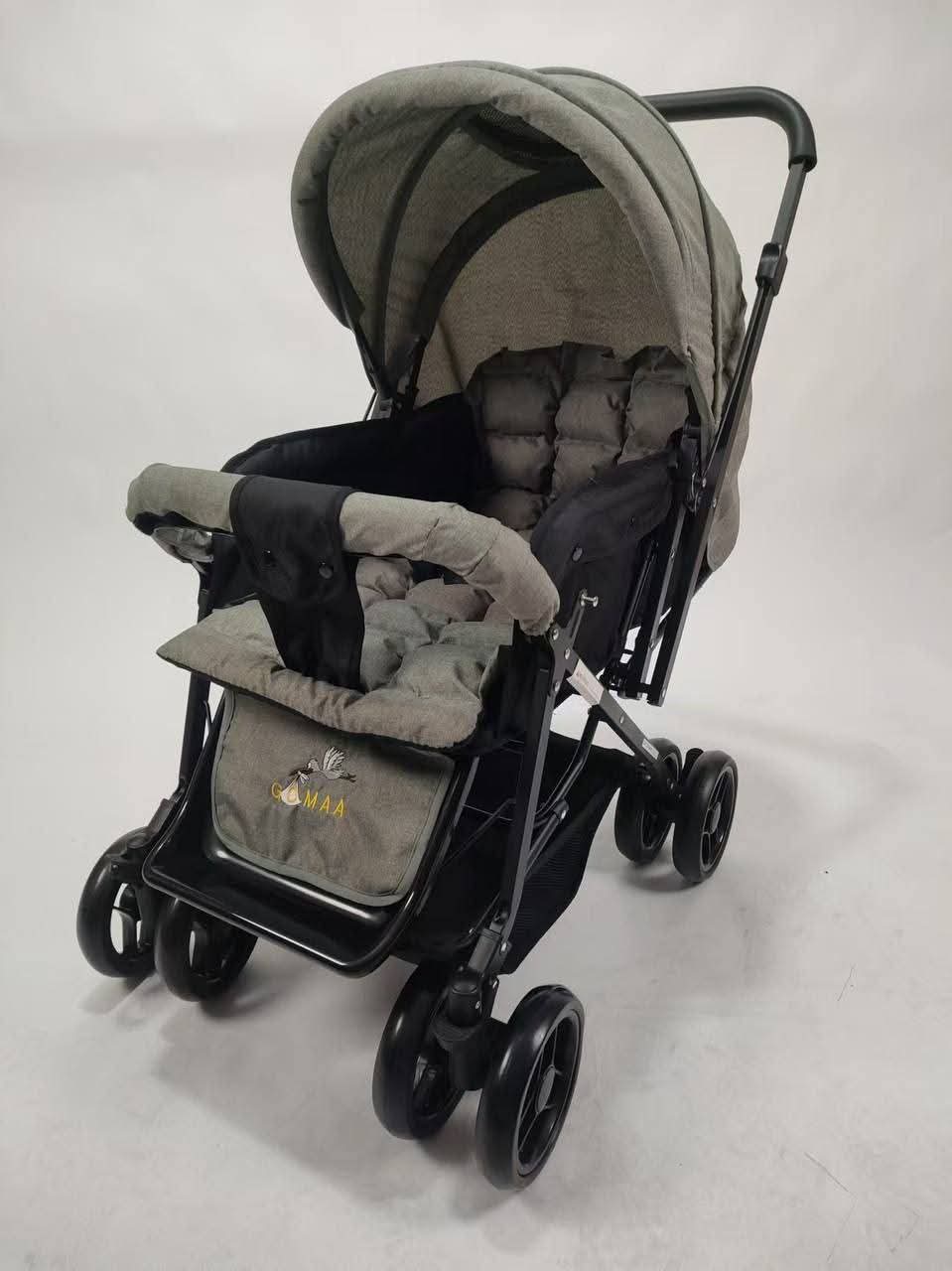 عجل كبير سرير واسع دراع قلاب بار طعام 3 مستويات للضهر سرير و شزلونج و كرسي كمان بيجي معاها مرتبه اضافيه بتتشال وتتغسل واسعه ومتينة تاخد طفلين فيها جيب فى الشمسية علشان الببرونه باسكت اسفل العربيه