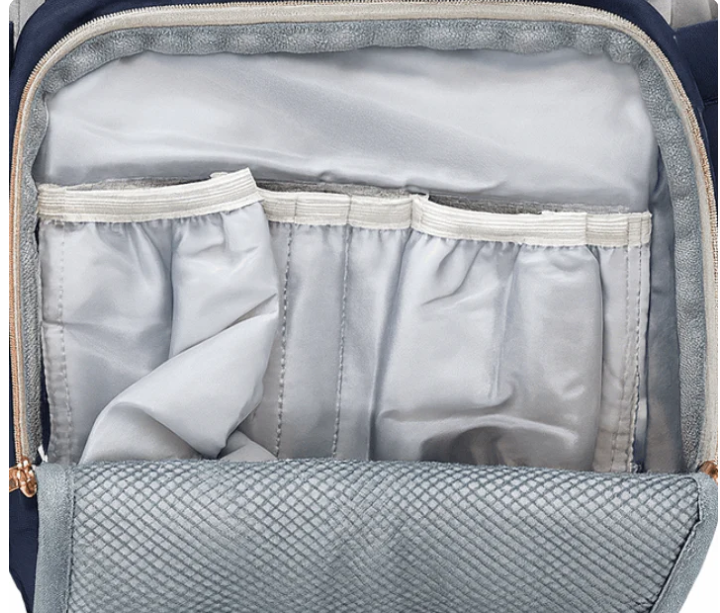 مساحة تخزين واسعة ومنظمة تساعدك في حمل كل مستلزمات طفلك من حفاضات، زجاجات، ملابس وألعاب بسهولة.