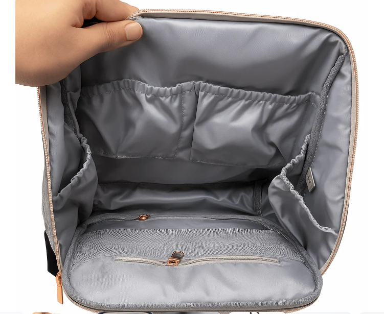 جيوب متعددة داخلية وخارجية بتقسيم عملي يسهل الوصول لكل غرض بسرعة.