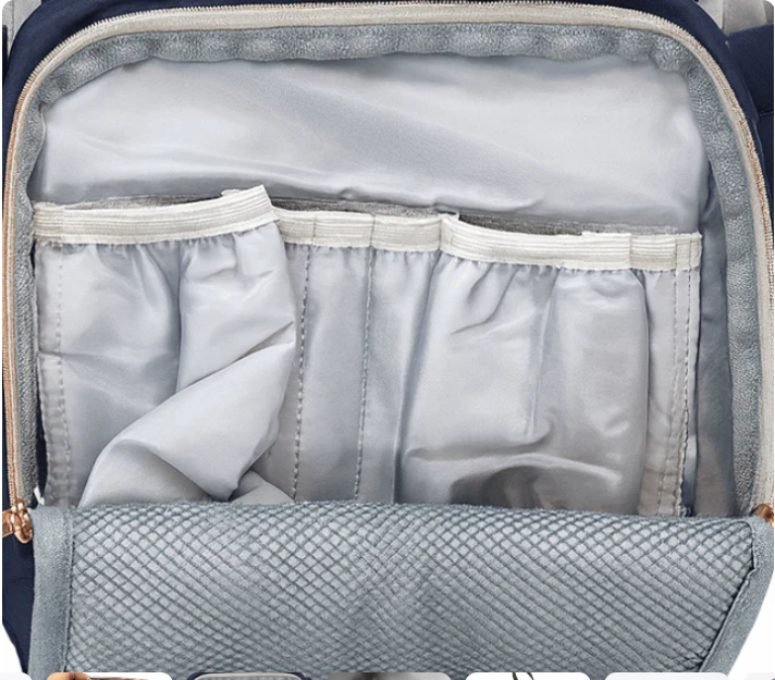مساحة تخزين واسعة ومنظمة تساعدك في حمل كل مستلزمات طفلك من حفاضات، زجاجات، ملابس وألعاب بسهولة.