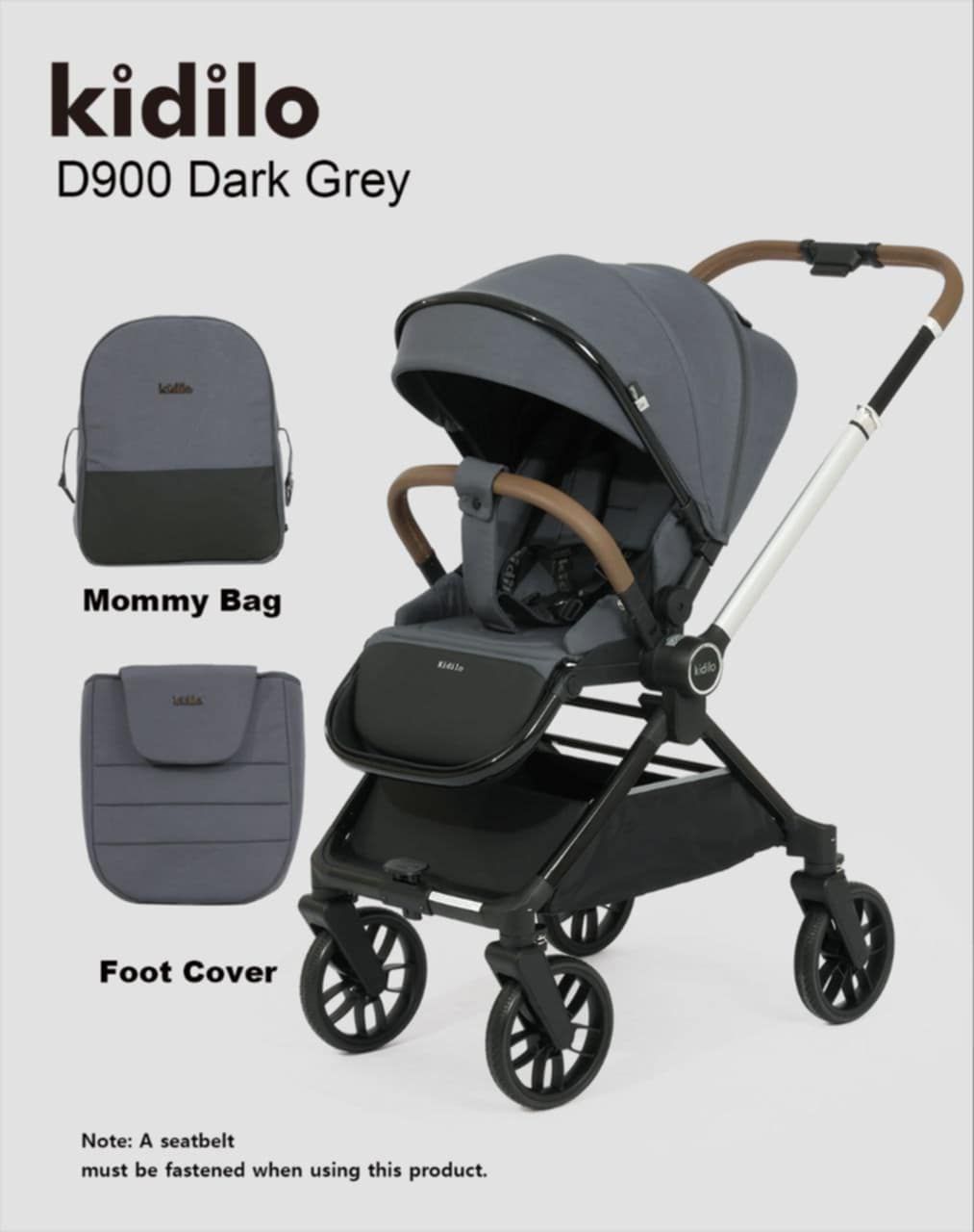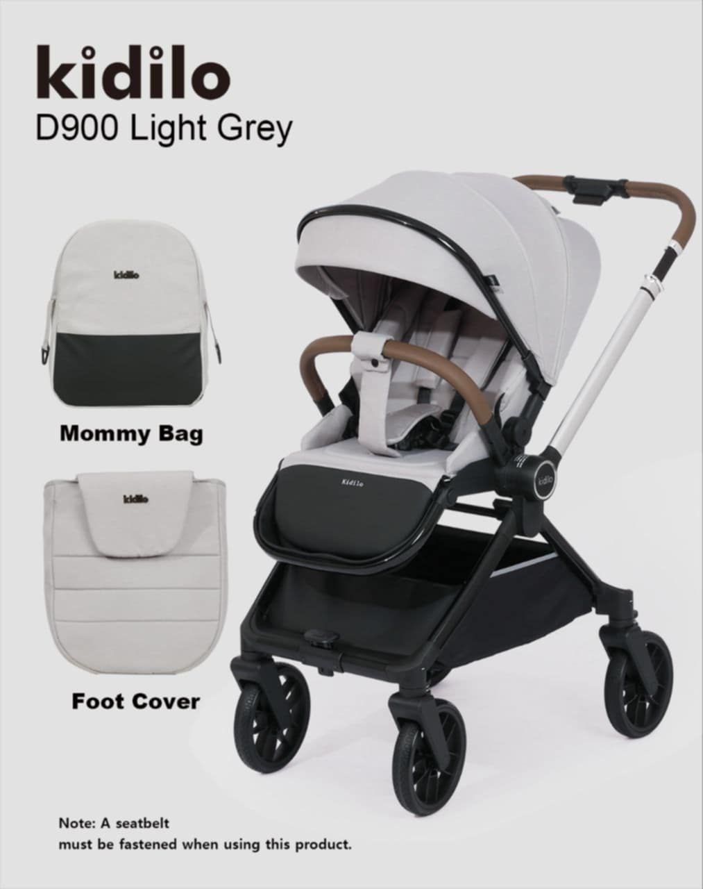 عربة الأطفال Kidilo D900 ا تأتي مع حقيبة للأم (Mommy Bag) وغطاء للأقدام (Foot Cover)، مما يجعلها مناسبة للاستخدام اليومي ويوفر راحة إضافية لطفلك.